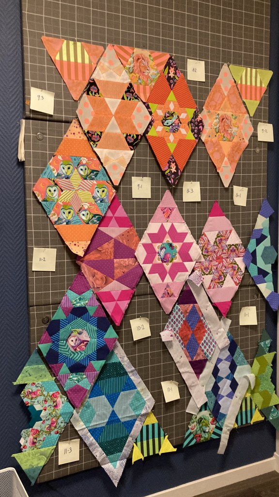 And then there’s the Queen of Diamonds top — which has been on this list before (maybe even twice… oops). All the blocks are done; only the sashing remains. Surely this is the year to finally get it done!