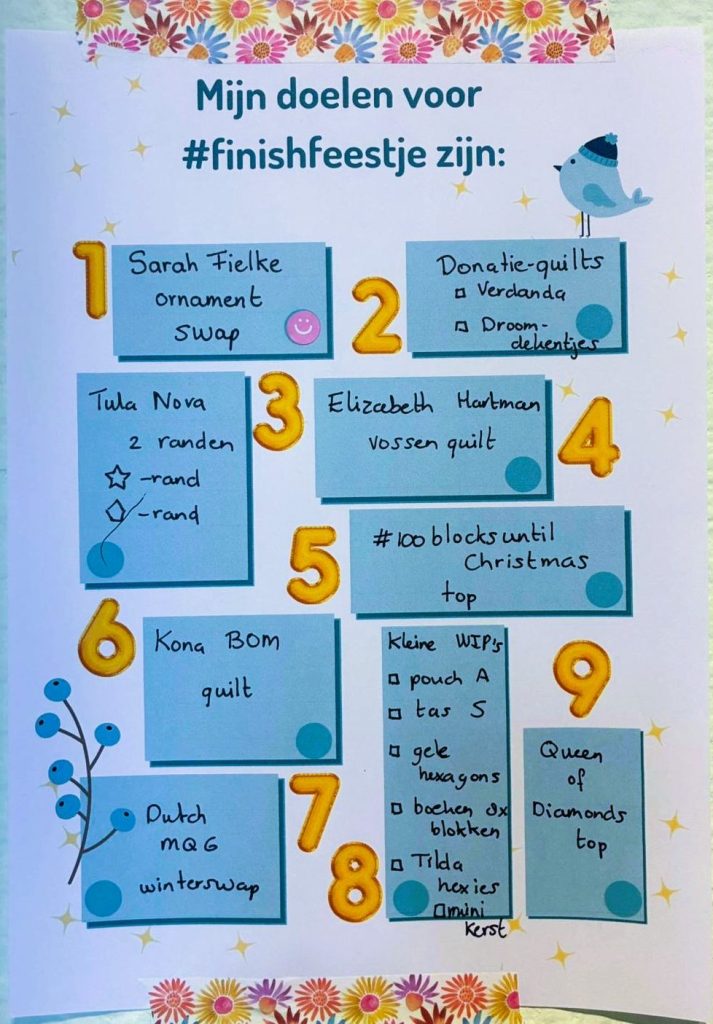 Every year, Deveney from Het Naaldbos hosts a finishfeestje at the end of the year — two months dedicated to finishing as many projects as possible. These can be any kind of handwork: quilting, embroidery, sewing, or knitting. The goal doesn’t necessarily have to be a full finish; you might aim to complete a quilt top, a section of a larger project, or just make visible progress.