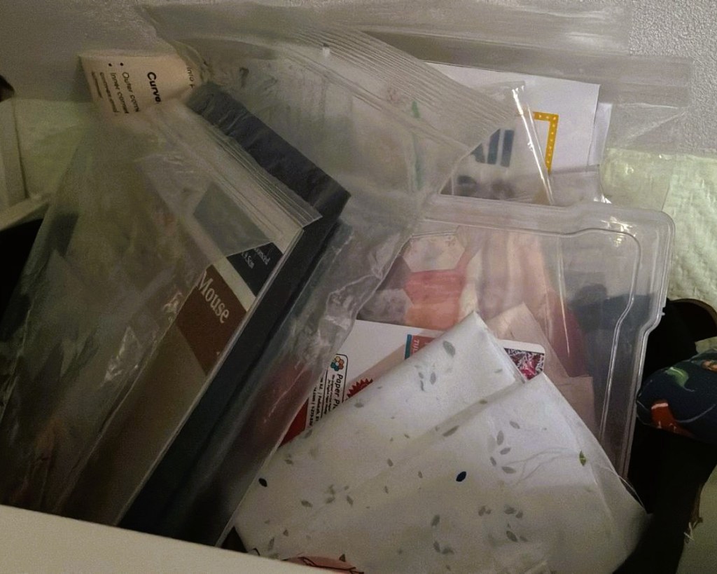Finally, goal 8: the small WIPs. While tidying my sewing room recently, I rediscovered a whole bunch of little projects — a bag with quilted panels ready to assemble, an EPP project that’s more than halfway done, and some mini FPP ornaments where I only have three or four left to make. I’d love to see how many of these I can tick off. Most of these are projects that could be finished in one or two afternoons or evenings, so let’s see what happens!